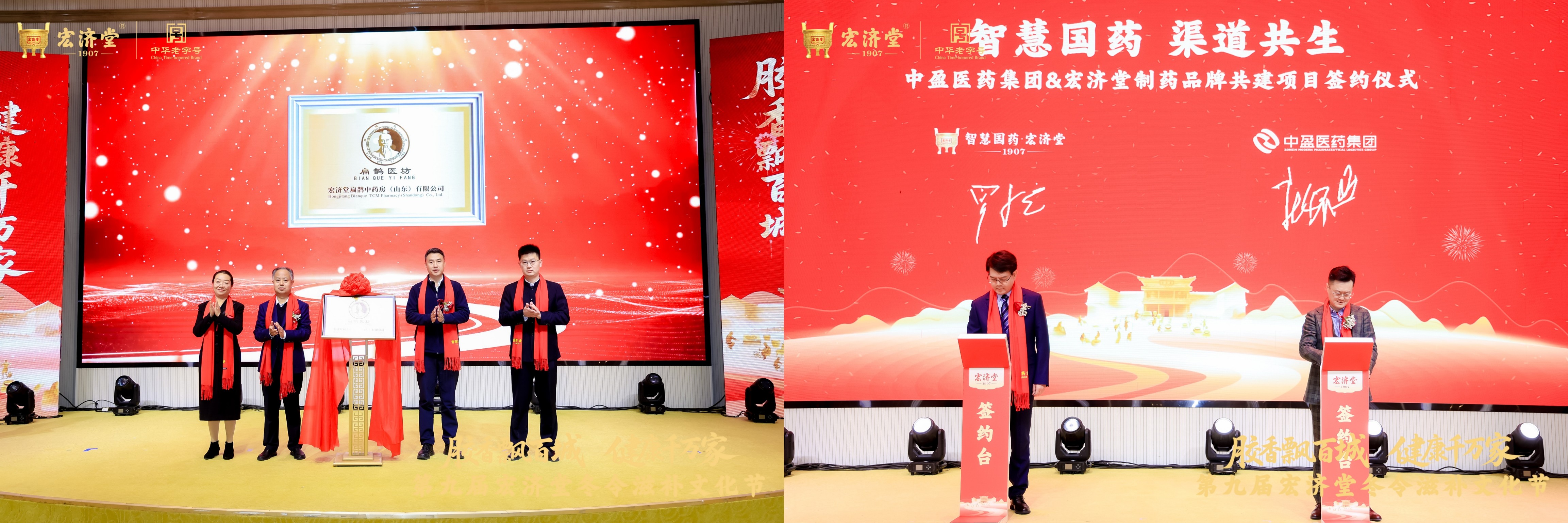 产业协同与文化赋能领域的成果同样亮眼。开幕式上,宏济堂健康产业董事长兼总裁刘皓发布“传承国药精华 科技赋能滋补”的大健康产品创新与合作蓝图;“智慧国药 渠道共生——宏济堂制药&中盈医药集团品牌共建项目”同步启动,开启渠道协同、市场共拓的产业合作新路径。压轴环节中,中共济南市委宣传部副部长王来勇,历城区委常委、副区长文海生,济南市工业和信息化局党组成员、副局长王冲鶄,宏济堂制药香港集团CEO 张卫强共同为扁鹊医坊揭牌,这一传承扁鹊精神的文化载体正式亮相,不仅丰富了中医药文化传播的载体,更助力“扁鹊故里 康养济南”城市名片焕发新光彩,实现文化价值与城市发展的双向赋能。最后,在省市区各级领导、合作伙伴及媒体朋友的共同见证下,第九届宏济堂冬令滋补文化节盛大启幕。